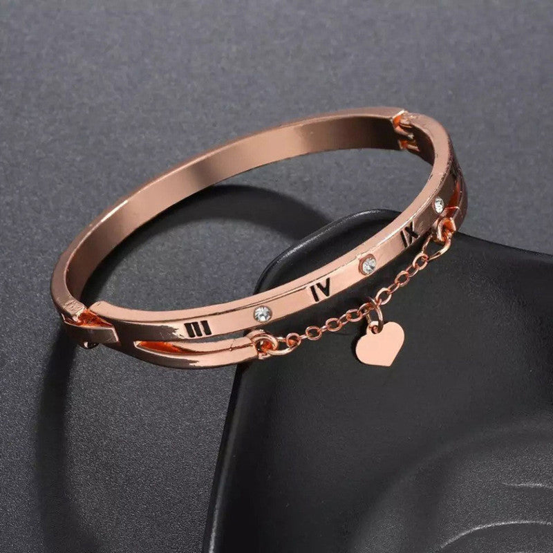 Rose Gold Plated Roman Numbers engraved Stone Studded Korean Bracelet For Women and Girls